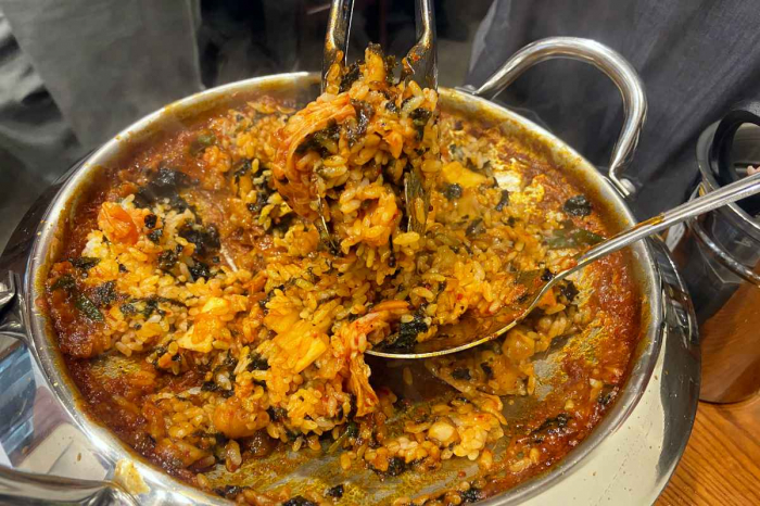 どんどんと食べ進め、いよいよ〆の炒飯をいただくことに。とびこや韓国のりが盛られたご飯がお鍋で丁寧に炒められていき、最後にはチーズが!とっても贅沢~。