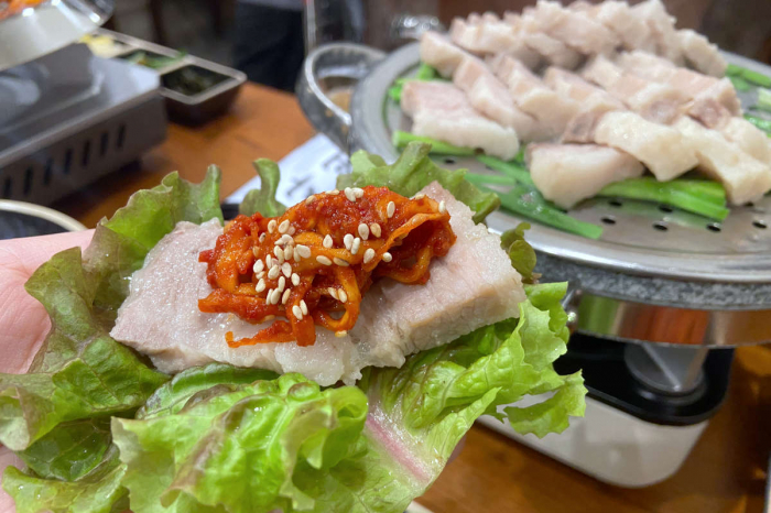 さらにこの日は他の料理も堪能。しっとりと柔らかい「ポッサム」はセットの熟成キムチやサンチュといただくことで、お肉のうまみを感じながらもさっぱりと食べられます。