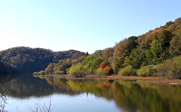 すぐ隣には千丈寺湖が広がり、静かな湖畔でゆったりとした気分を味わえます。遠くに見える山々の稜線や色づく木々を眺めながら、しばらくぼーっと過ごしました。