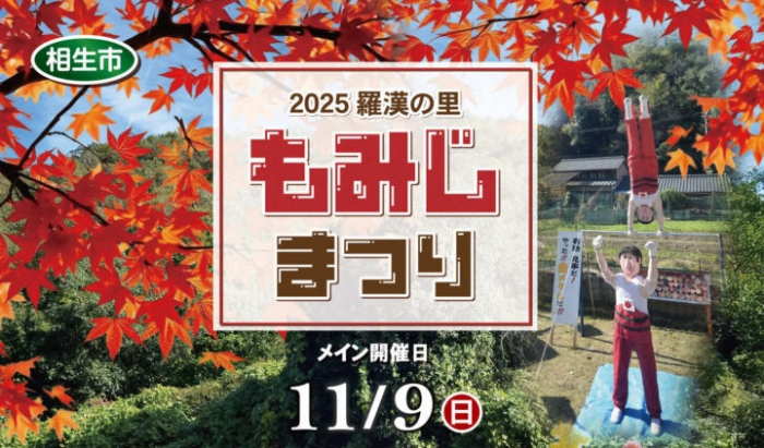 そんな同施設で、この時期注目の「もみじまつり」。アイデアいっぱいの手作りかがしが来場者をもてなすほか、11月9日のメインイベントでは多数の飲食ブースや楽しいステージイベントも。当日に限りJR「相生駅」からバスの運行も予定されており、交通の詳細や時刻表、イベントの詳細は後日公開される予定です。
