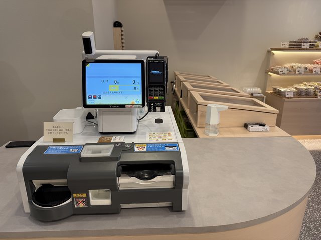 支払いは自動精算機で、キャッシュレスにも対応。