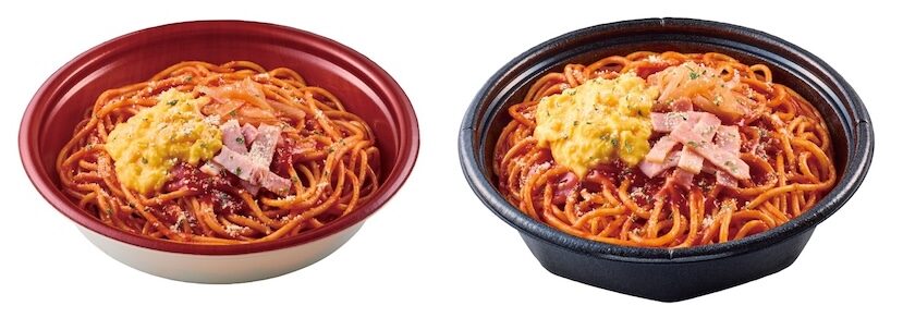 従来品「大盛ナポリタン」と比較して、麺重量を約50%増量。味付けはケチャップで、スクランブルエッグとベーコン、玉ねぎをトッピングした、総重量700gというボリュームたっぷりのナポリタン!