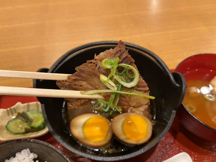 すっかり虜になったのは、牛すじ煮込みのタレと「たまごかけご飯」のコラボ。牛すじの旨味をしっかり含んだ甘辛いタレが合わないはずがない!中高生男子がごはんをかきこむような、やんちゃな食べ方をしてしまいそうでした。