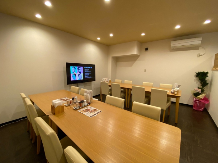 2階にも4人掛けのテーブル席が4卓あります。こちらは16人までの忘年会や新年会などにも利用可能。宴会におすすめの「国産黒毛和牛すきやき」や「国産黒毛和牛ホルモン鍋」のコースもあります。
