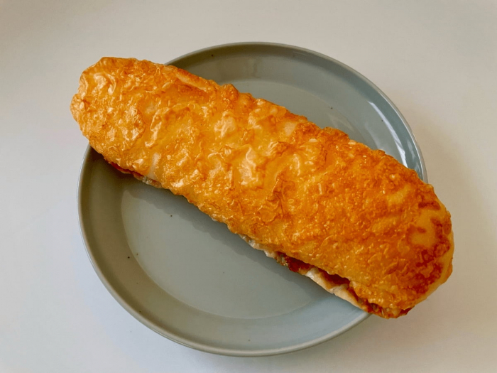 まずは「自家製ビーフカレーパン」をいただきます。ガリッザクッ食感!この食感を保つために、生地は薄皮にしているそうです。まろやかなルーには大きな牛肉が入っていて満足度高し。食べ放題にカレーパンが入っているのは嬉しいです。