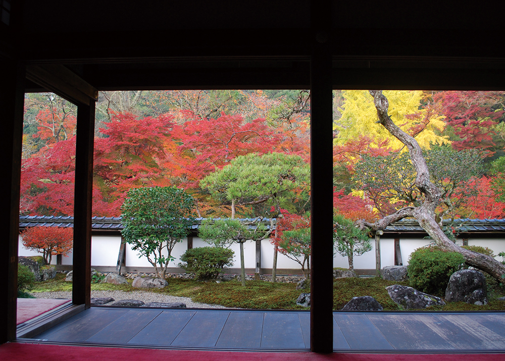 福寿院庭園越しの風景は一幅の絵さながらだ。
