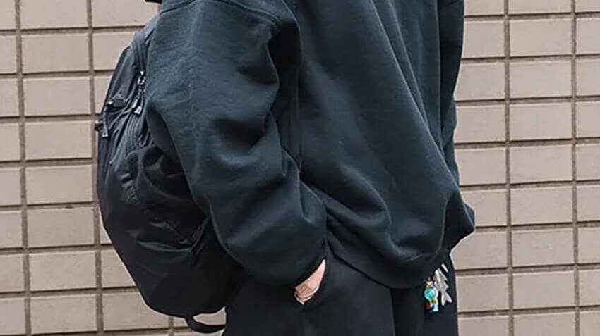 グレーのロゴスウェットと黒パンツのコーデは、秋らしい雰囲気でおでかけにピッタリ♡
