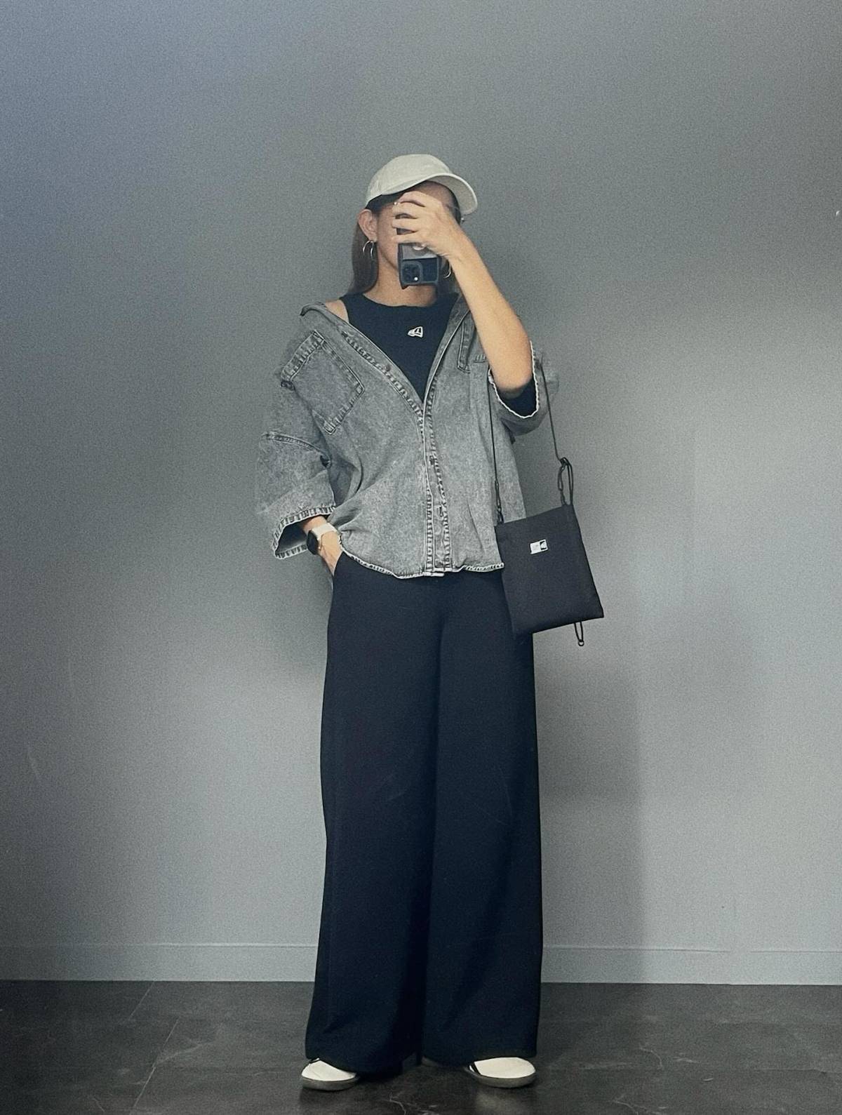 【10月編】センスいいスニーカーコーデ③デニムシャツ×ワイドパンツ