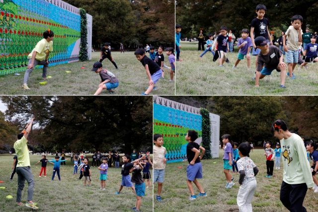 負けたら近くの木まで走る罰ゲーム付きでしたが、勝ち負けにこだわることなく「負けちゃったー!」とみんな笑顔で走っていきます。