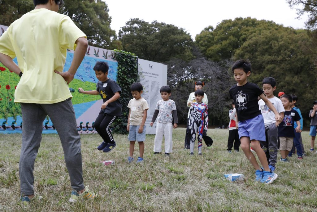 ハヤテコーチ(梶原さん)とコノミン(内藤さん)の呼びかけで集まったら、まずはみんなで大きな木の下までダッシュ!