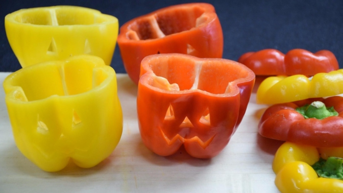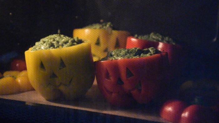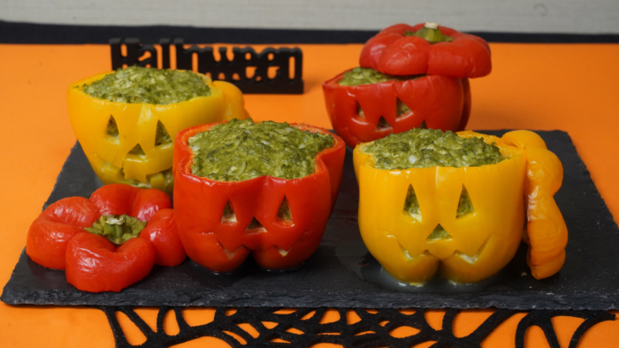 あらびき茶×パプリカ!「ジャック・オー・ランタン風パプリカの肉詰め」