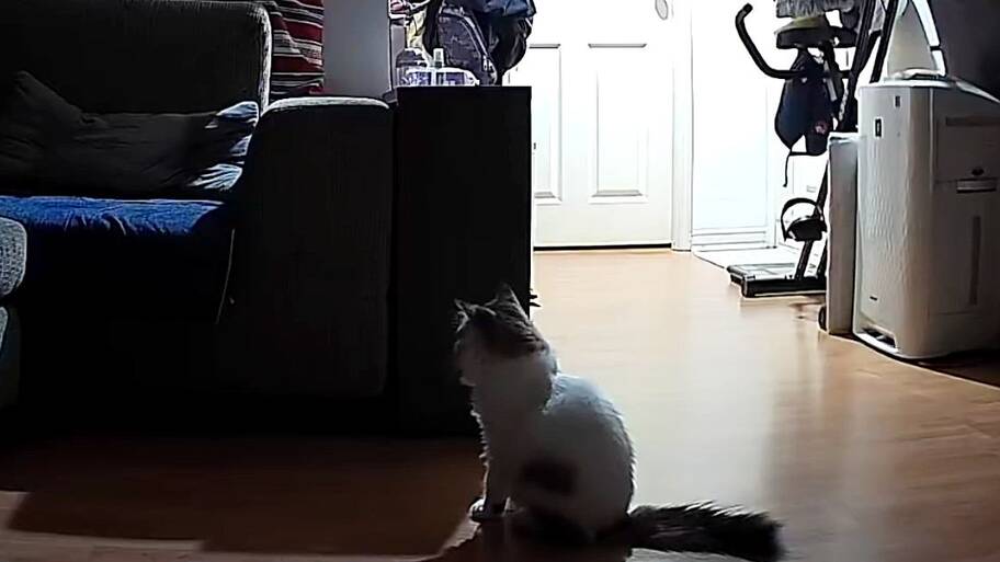 そこへやってきたのは、一緒に暮らしているアメリカンショートヘアのらるちゃん。紙袋のうしろから探るような表情で近づいてきたといいます。紙袋にすっぽり入ったそるくんからは見えない角度だったそうですが…?