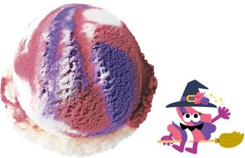 ビターチョコレートと爽やかなミントのアイスクリームに、パチパチ弾けるポップロックキャンディで遊び心をプラスしたフレーバーは、ハロウィンの夜をイメージしています。