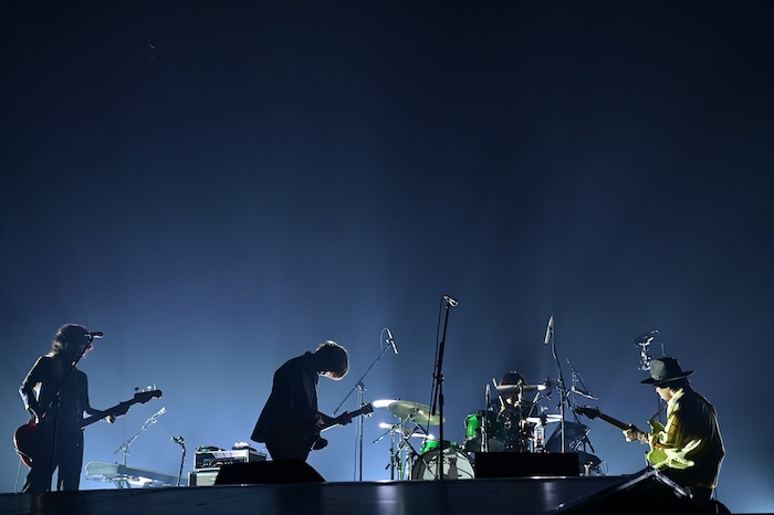2日目のイベントのトリを飾ったのが、クリープハイプ。「思わず止めた最低の場面~二人で一緒にいたい」と、尾崎世界観がアカペラで『ナイトオンザプラネット』を歌いだした。思いを滲ませた言葉の数々を、まるで詩を朗読するように彼は語り続ける。そこへ歪んだギターの音色が重なり、ライブはゆったりと幕を開けた。言葉の一つ一つを、心の中で咀嚼しては吐き出すように尾崎世界観は歌い、語っていた。空間を生かしたシンプルな演奏の上で、尾崎世界観は言葉の響きと意味を大切にしながら、広い会場に想いを響かせていた。