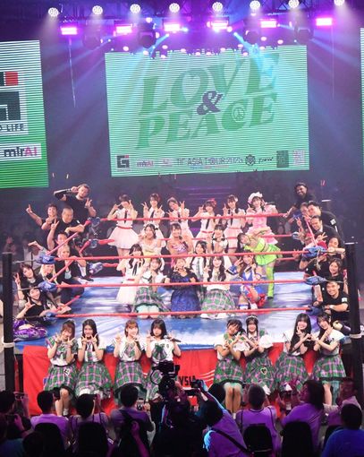 さらに、アイドルの応援にモーニング娘。OGの矢口真里も駆けつけ 、ラストパフォーマンスではKLP48とNGT48による「会いたかった」が披露された 。エンディングでは矢口真里、KLP48の選抜メンバー、NGT48北村優羽、荒井優希、アップアップガールズ(プロレス)も加わって「LOVEマシーン」をパフォーマンス 。曲の最後には全選手、全出演者がリングの周りを囲み、会場全体で大合唱となり、マレーシアのファンの拍手喝采の中、イベントは終幕となった 。