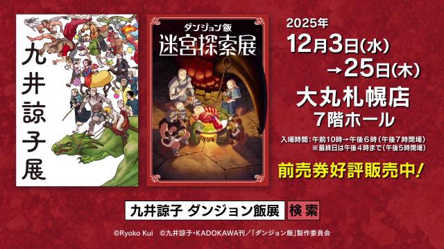 人気アニメ「ダンジョン飯」の展覧会が12月3日から、札幌市の百貨店「大丸札幌店」7階ホールで開かれます。原作の漫画家・九井諒子さんの初となる作品展覧会。原画やイラスト、アニメの世界を体験できる企画が用意されています。
