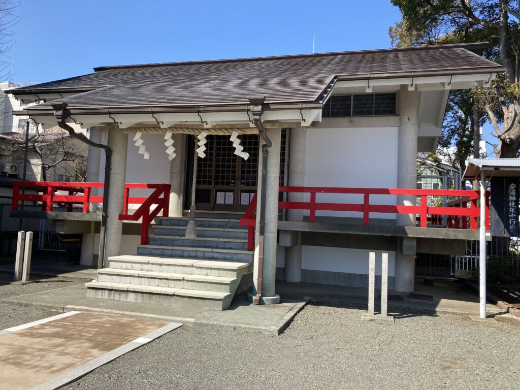 朱塗りの拝殿と石造りの鳥居が青空に映え、周囲の木々が柔らかな陰影をつくる境内は、落ち着きと清々しさを感じる空間。地元では厄除け・商売繁盛の祈願にも訪れる人が多く、まちの“心のよりどころ”として親しまれています。