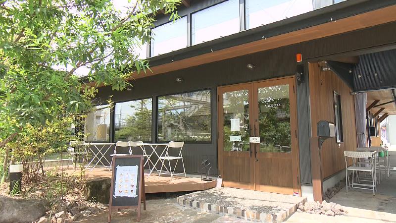 近づいてみると、そこにはオアシスのような雰囲気のお店。テラス席もあり、緑に囲まれた心地よい空間です。