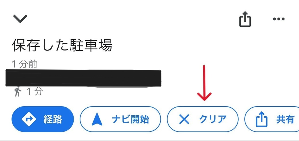 用事が済んで駐車位置を消したいときは、ピンマークを再度タップし、メニューから「クリア」を選べばOKです。