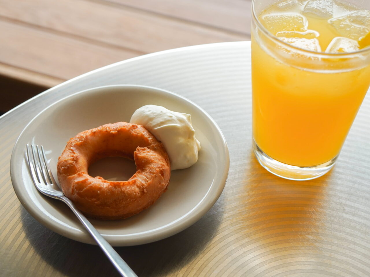 一杯ずつ搾るフレッシュな味わいは、みかんの甘みと香りをダイレクトに楽しめます。お店の看板スイーツ「豆腐ドーナツ」と合わせて、産地直送のおいしさを堪能してみてください。