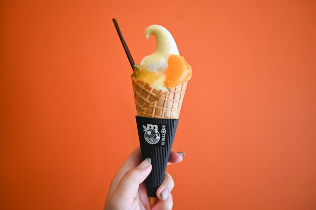 フレーバーはブラッドオレンジやカラマンダリン、清見オレンジなどが登場し、温州みかんは、10月中旬から販売スタート。スイーツも充実し、柑橘フレーバーの「ソフトクリーム」(450円~)や、生クリームと柑橘をふんわりサンドした「シトラスコッペ」(350円)がラインアップ。採れたて×生搾りならではのフレッシュなおいしさを、季節ごとの品種で楽しんで。