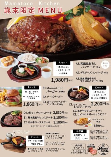 「安心して食べられる、美味しいお肉を届けたい!」 そんな想いで、レストランでの営業や、バーベキュー、お肉の販売などをされているママトコキッチンが、今年の12月31日から無期限で休業されることになりました。 寂しくなりますが、今月もクリスマスメニューの販売や、27~30日の歳末大売出しなどが予定されていて、最後まで見逃せません!
