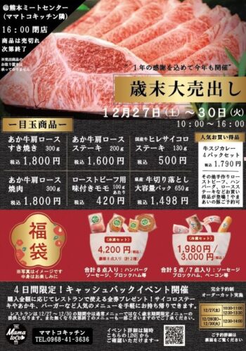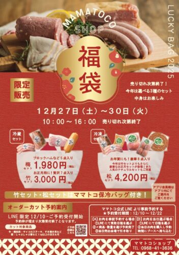 クリスマスの期間中は、ローストチキンやオードブルなど、クリスマスメニューの注文も可能ですので、お得な歳末大売出しや福袋販売と合わせて、最後までお楽しみいただければと思います。 また、ショップ休業後も、ママトコECサイトから商品の購入が可能です。ご希望の方は、こちらのECサイトからご注文をお願いします。 ※飲食店さんへの卸しやお肉の大量注文などは、引き続き受けられるそうですので、ご安心ください。