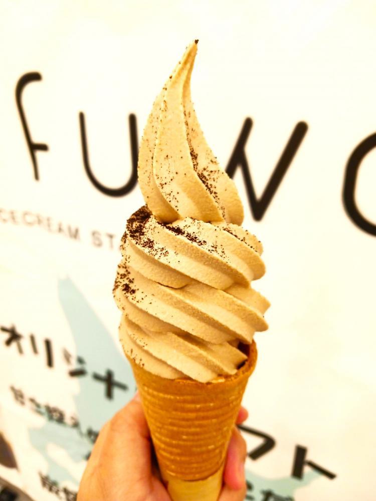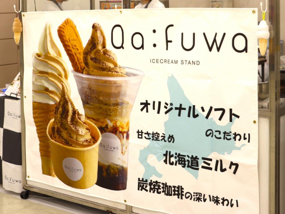 筆者は関東初出店の「炭焼コーヒーソフトクリーム Qa:fuwa」(カフワ)の北海道ミルクの炭焼きコーヒーソフト(単品550円)を食べてみました。
