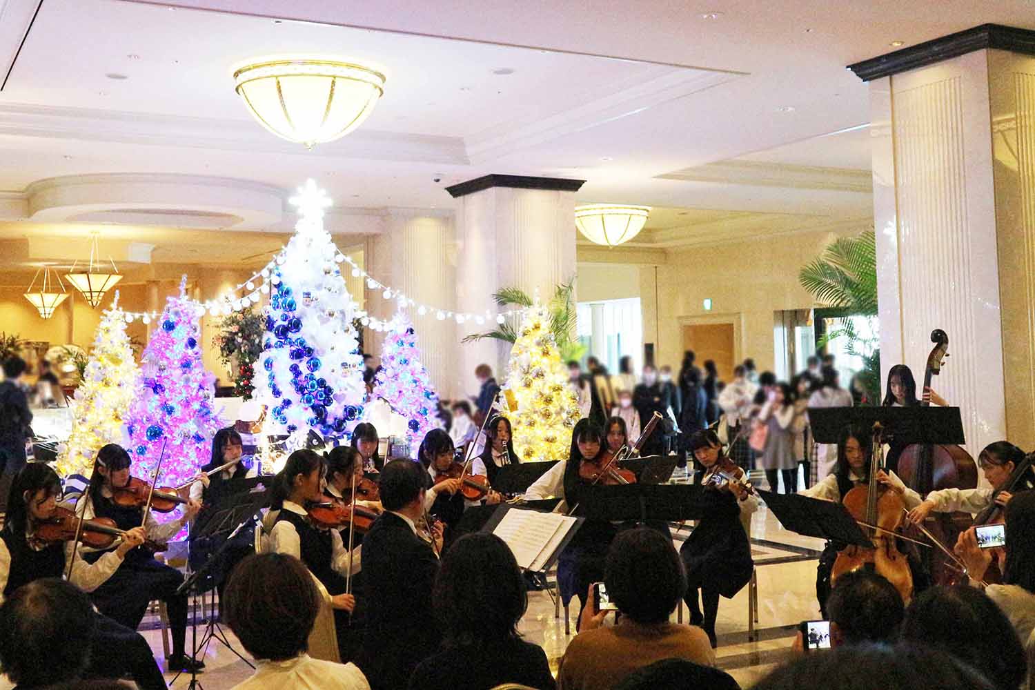 ロビーいっぱいに響くクラシカルな音色が、クリスマス気分をさらに盛り上げます。