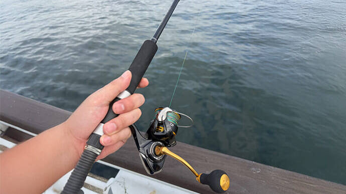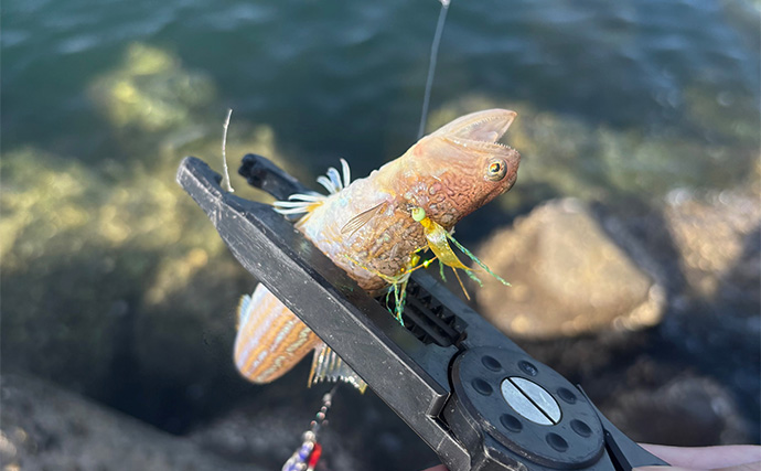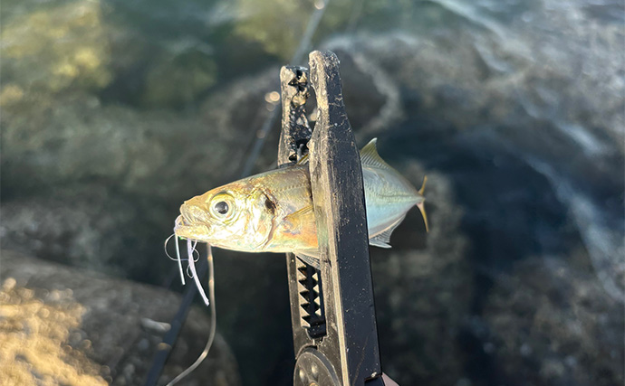 水潮が入ると水中の酸素量が減り、魚の活性が鈍る。さらにこの日は浮きごみも多く、ラインやルアーに絡むことが頻発した。晴れて陽射しが強くなったタイミングでは海面がキラキラと輝き、一見すると条件が良さそうに思えたが、水潮特有の冷たさと浮遊物が魚の警戒心を高めている様子が伺えた。