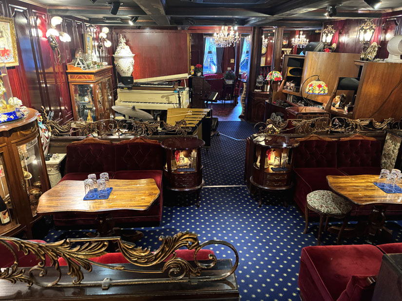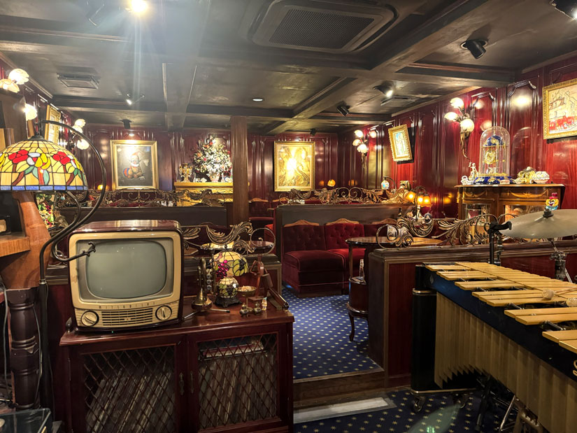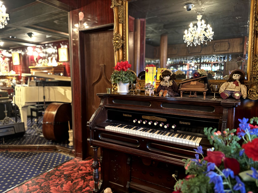 店内に一歩足を踏み入れてびっくり! 夜は生演奏が繰り広げられるライブバーだけあって、奥行きのある音楽空間が広がっています。
