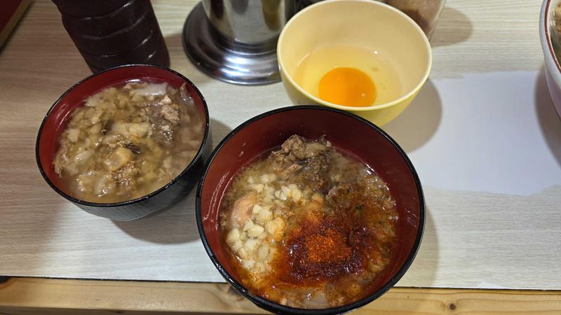 追加注文の生たまごに麺をつけて食べることで、すき焼き風にもなります!