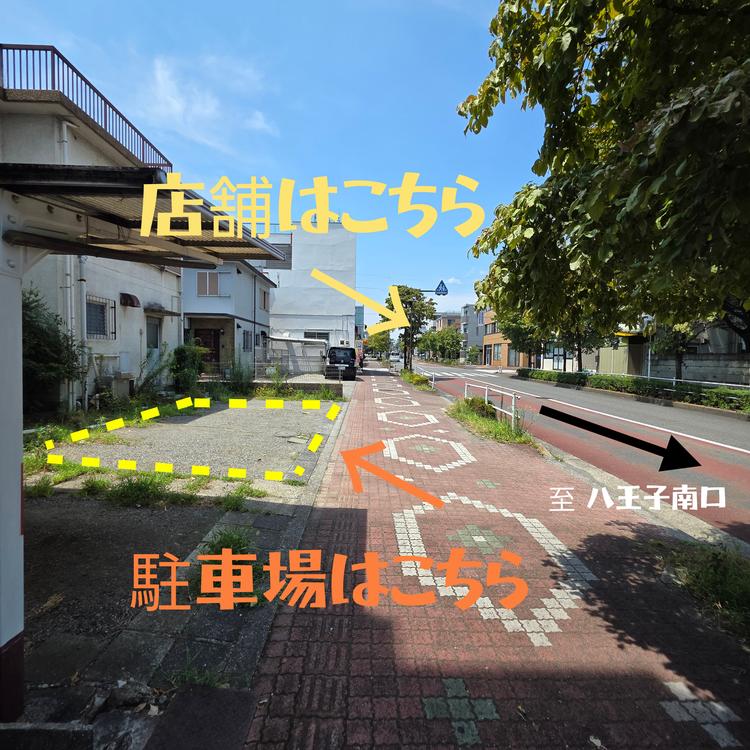 店舗から少し離れたところに駐車場があります。3台停められます。お店の入口のポップに詳細が書かれているので注意事項を確認して停めます。