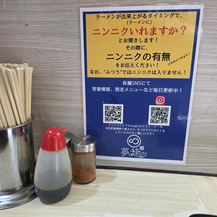 全マシコールでお腹がいっぱいになりました!麺もスープもかなりのクオリティです!八王子の二郎系でも屈指の夢で逢えたら。ぜひ食べてみてはいかがでしょうか!