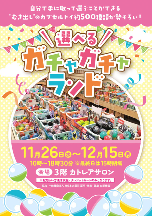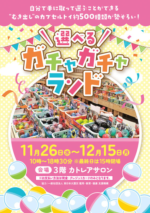 また「選べるガチャガチャランド」の利益の一部と寄付金は震災復興支援に充てられるそう。