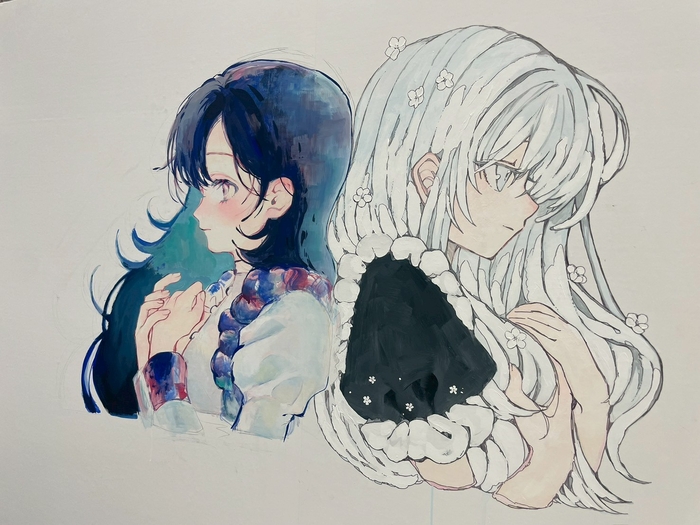 芦屋マキさんとumiさん、お二人の共同ブース。タッチや色使いが違うのに、どちらも一目惚れでした!