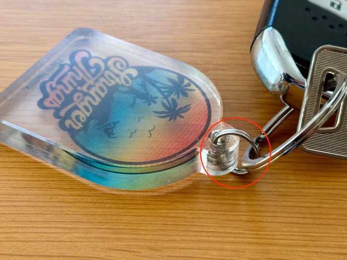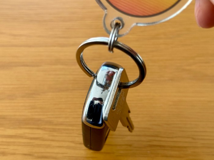 問題のリングは「車の鍵」と「キーホルダー」をつなぐ部分。もちろん最初は普通に使えていたのだが、使い込むうちにリングが広がってしまい、気づけばキーホルダーだけがポケットの底に落ちている。またか……