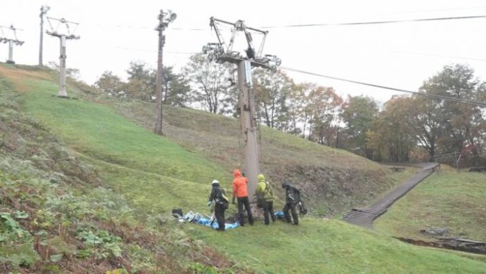 スキーシーズンを前に 金谷山スキー場でリフトの器具交換