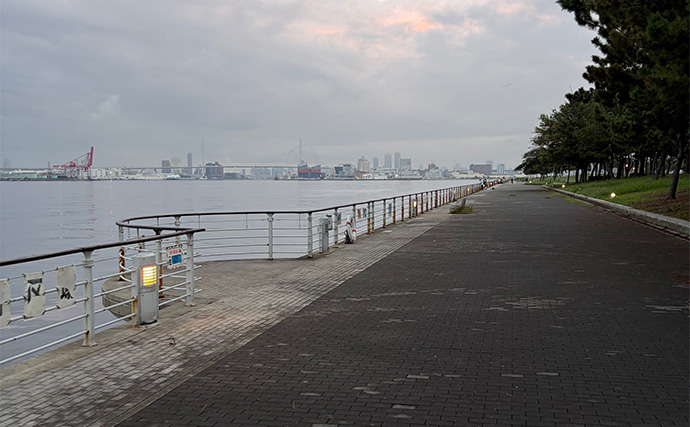 朝、4時半にセットしたアラームが鳴り、起床。窓から外を見てみると、なんとか曇りで持ちこたえている。これなら釣りができないこともない。始発の電車に乗って、シーサイドコスモを目指した。ちなみに、万博のため、中央線は朝早い時間でも座ることができない、ほとんど満員という状態である。