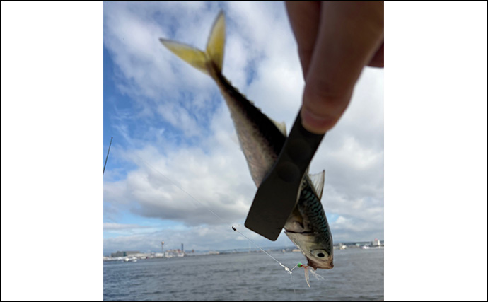 それが、最後の最後に何が起こるかわからないものである。ボトムに着底、ジャーキング、フォールを繰り返していた釣りで、距離的にラストのジャーキングとなった1回で、サバがヒットした。