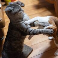 ハナちゃんのしつこさに爪が出てしまうこともあるそうですが、ちゃんと手加減をしているクロくん。この時も結局は隣に並んだそうで、なんだかんだ仲良しな微笑ましいふたりなのでした。