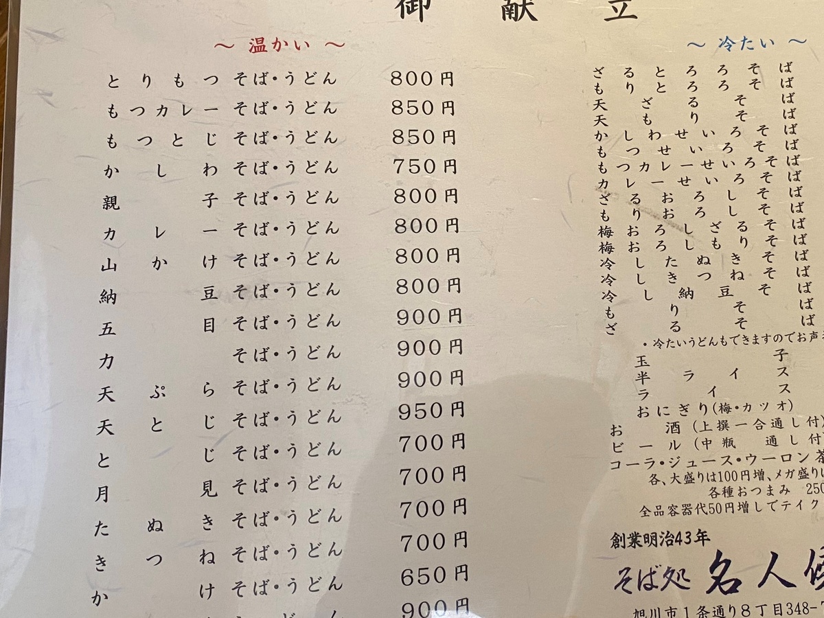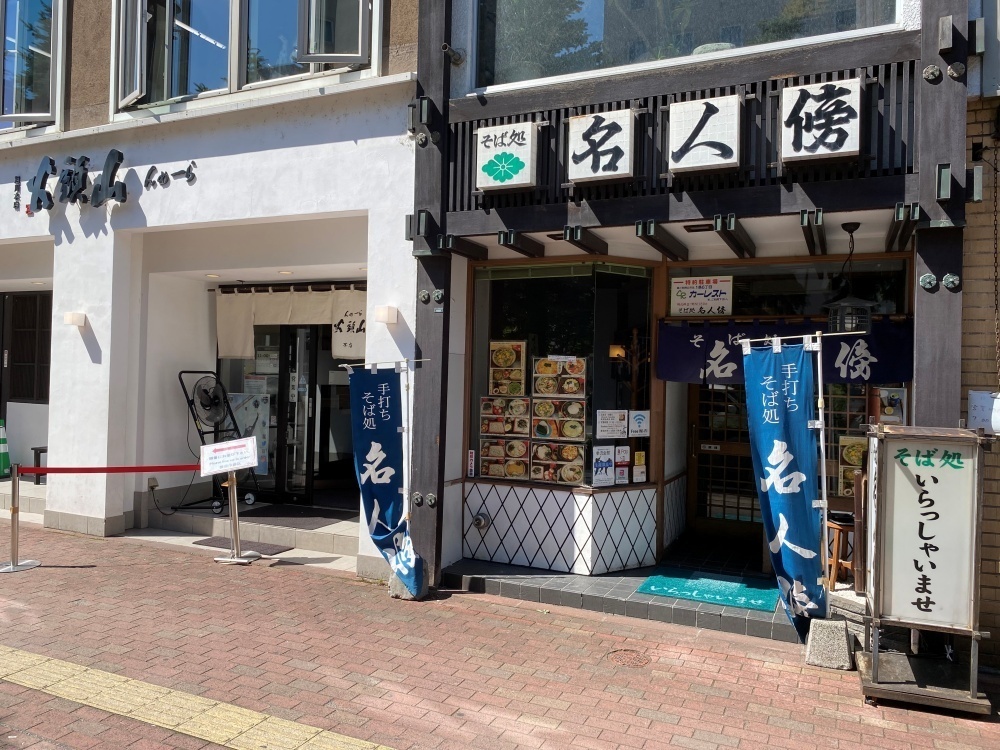 「そば処名人傍」は創業明治43(1910)年の老舗のおそば屋さんで、旭川出身の小説家「三浦綾子」さんが、生前にご主人と通っていたそうです。