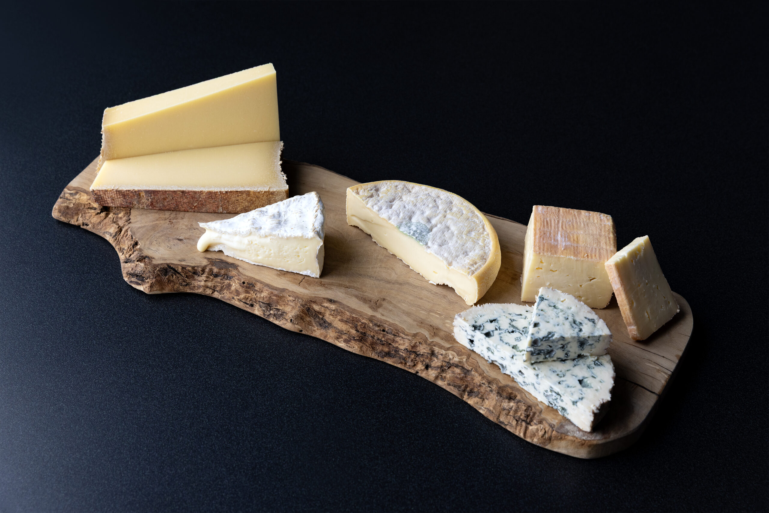 オーヴェルニュ地方を代表するフルム・ダンベールは、ブルー・ドーヴェルニュのような力強い青カビチーズに比べ、クリーミーで塩気も控えめ。初心者にも受け入れやすい上品な風味を持つ。