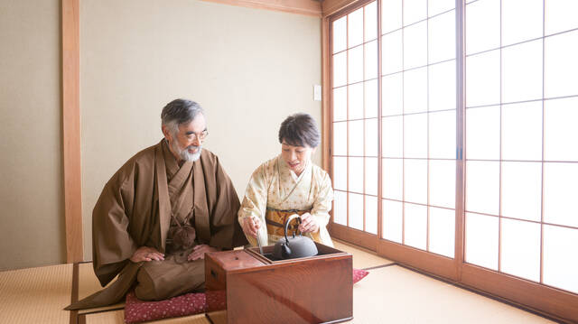 その隣にある扉をくぐれば、京町家ならではの奥行きある空間が広がります。店内はお琴のBGMが流れ、表の喧騒が嘘のような落ち着いた雰囲気。1階・2階にはテーブル席があり、ゆったりとお寿司を堪能することができます。