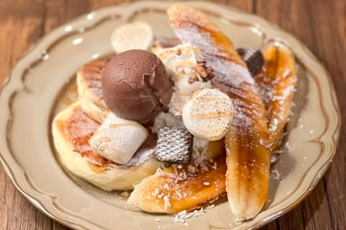 ブリュレしたバナナとキャラメル、チョコのジェラート、チョコウエハース、マシュマロと、子どもも大人も大好きなものが大渋滞!