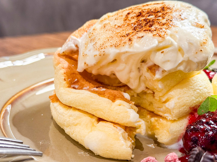 スフレと昔ながらのパンケーキのいいとこ取りをした、ふわっふわで分厚い新食感パンケーキ「八雲スフレ」が楽しめるカフェができました♡