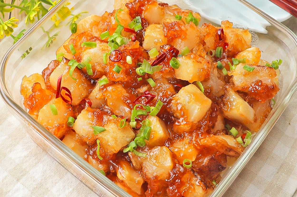 片栗粉をまぶしてカリッと焼いて、甘酸っぱいたれにジュッと漬けるだけの「大根の南蛮漬け」のレシピをご紹介します。