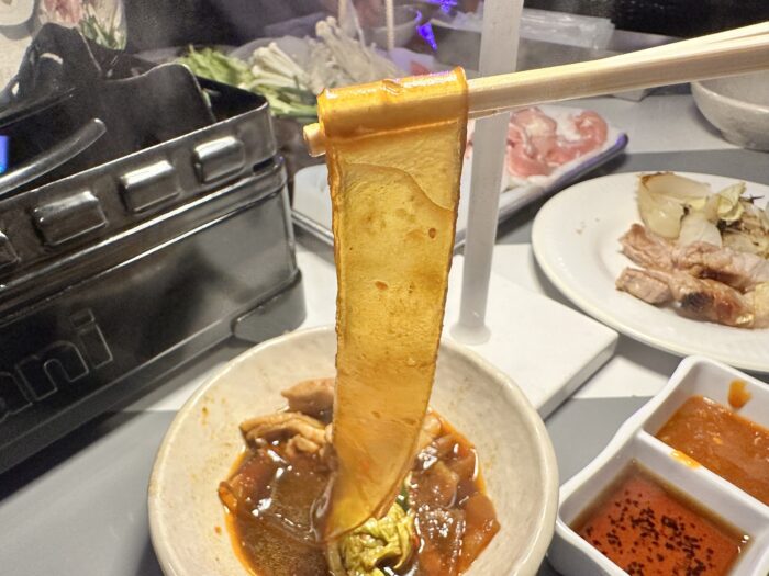 本格的な香りが漂います。具材は豚肉・鶏肉・白菜・蓮根・エノキ・ニラ・木耳・大根・豆腐・春雨などなど、ボリューム満点です!しかも、白菜と大根は食べ放題です!!