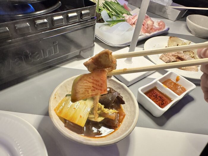 豚バラ肉は追加で注文することができて、味もプレーンの他に燻製、ハーブ、味噌の4種類から選ぶことができます。お肉好きも野菜好きもどちらも楽しめますね。
