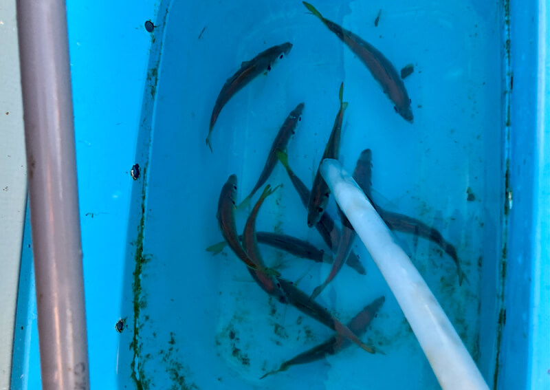 そしてこの釣り最大の強みはマッチザベイト。その地域に生息する大型魚が捕食している小魚をエサとすることで、より自然にエサへの捕食を促すことができます。ベイトが付くと高確率でアタリがあるので、竿先がプルプルと震え、直後に大物が襲いかかる瞬間はスリル満点ですよ。